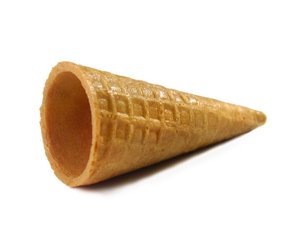 This looks more like a sugar cone you would get at a icecream shop versus a cake cone. Holds approximately 2 oz.